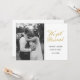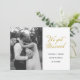Announce your new status as a married couple with this elegant, minimalist wedding announcement card. Featuring classic black lettering and a simple, modern design, this card beautifully showcases your favorite wedding photo. Easily personalize it with your names, wedding date, and a heartfelt message to share your exciting news with friends and family. This customizable card is the perfect way to send a stunning, personalized memento of your special day.