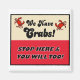 Reproduction of a hilarious retro roadside sign: We Have Crabs - Stop Here & You Will Too! Whether you remember the originals or are just now getting your first chuckle, these "We Have Crabs" products are terrific gifts for anyone with a sense of humor. Be sure and look at my other "We Have Crabs" items (magnet, greeting cards, Tshirt, mug, mousepad, etc.