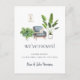 We’ve moved - new home announcement card with a watercolor illustration of a boho interior with a cat and house plants.