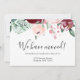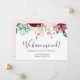 'We have moved', elegant watercolour burgundy and pink floral announcement flat card. Let your friends and family know you have finally completed on your purchase and where they can find you. The card can be customized with the inclusion of your family name and new address. The back of the card bears the message 'we hope to see you soon' and you are welcome to keep the design text as-is, edit or delete. A new home equals new beginnings and new memories!