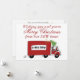 This is a somewhat humorous Christmas card for a family that has moved and would like to inform their family and friends of the new address. A moving van has a small tree on top of the cab, and the garland is flying off behind it.