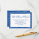 Keep your friends and family up to date with your new address using these simple, elegant enclosure cards. A header note reads "We Have Moved" at the top, using a pretty, traditional script font. Use the template fields to add all your details to personalize this design for your own use. The blue type was placed over editable white with a wide matching border and reverse solid background. The solid surfaces were overlaid with a cheerful, preppy white "ogee" pattern! You can change the backgrounds and all type to any color you wish. Likewise the fonts can be changed if you prefer any such variations to the design.