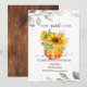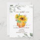 Watercolor pumpkin with sunflowers, and leaves on white background.