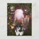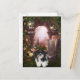 Postcard "we have moved" Pretty Flowers chair scenery with black and white Shih Tzu dog. Customise with your own text.