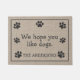 This funny pet dog doormat design features the words "We hope you like dogs". Personalize this cute rustic faux burlap country door mat with your family name and custom greeting. The perfect unique modern housewarming or new homeowners gift.