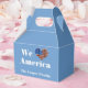 Celebrate your forever love for America with this patriotic heart-shaped American flag design. Ready to personalize with family name.