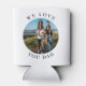 Keep your favorite beverage cold and your love for dad close with our "We Love You Dad" can cooler. This sleek design boasts a round photo of a cherished father figure, framed by elegant serif lettering, ensuring your drinks stay refreshing and your sentiments warm.