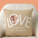 This "We Love You Dad!" Photo Pillow is decorated with the word LOVE in white typography on a tan background.