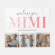A cute picture blanket for a special grandmother featuring a 3 photo collage template of the grandchildren, the words "we love you mimi" in a cute pink gradient font, and the kids names.