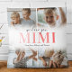 A personalized pillow for a special grandmother featuring a 4 photo collage template of the grandchildren, the words "we love you mimi" in a cute pink gradient font, and the kids names.