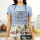 Perfect gift for Mother's Day, Birthday, or the Holidays: A modern, sweet apron customized with ten of your personal favorite photos as well as a message, names for the best mum ever. This is the dusty blue and white striped version.