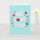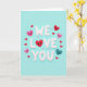 This card features the message “WE LOVE YOU” stacked in three lines, with rounded, puffy light-pink letters that look softly shaded for a gentle 3D effect. The background is a smooth teal field that makes the pink text stand out and adds a calm, sunny feel. A glossy red heart replaces the “O” in “LOVE,” drawing your eye right to the center like a little romantic wink ❤️. Scattered around the words are a few larger hearts with tiny dot eyes and sweet smiles, giving the scene a friendly, affectionate look 🥰. Two bright fuchsia hearts sit near the “WE” and “YOU” lines, and a teal heart joins them so the colors feel balanced across the layout. Smaller red hearts and tiny pink hearts float around the main elements, like little hugs drifting through the space. The letters sit centered with even spacing, while the hearts are sprinkled mostly around the edges and between lines to frame the text without covering it. The teal background stays solid and uncluttered, with soft shadows under the letters and hearts to keep everything looking lifted from the page.