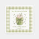 These paper napkins feature a charming botanical green baby shower design with a sage green and white gingham border. The watercolor illustration shows a matcha latte in a mason jar with a large soft green bow, surrounded by tiny scattered hearts. Includes the sweet pun "Baby, We Love You So Matcha!" in coordinating green lettering. This modern botanical aesthetic is perfect for coquette, tea party, or gender neutral baby showers. Coordinates beautifully with the full matching collection for a cohesive event theme.
