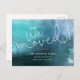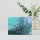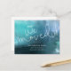 Affordable custom printed moving announcement postcards personalized with your family's new address and contact info. This chic minimalist design features an aqua watercolor background and modern hand-lettered script font. Use the design tools to customize the text, edit the fonts and colors or add your own photos to create a one of a kind new address card for your family or business.