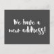 This modern minimalist we moved announcement postcard features fun brush lettering in black and white.