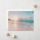 Beautiful change of address beach house moving cards that read We Moved to the Coast. Share your new seaside home address with friends and family using this lovely ocean photograph card. A seashore at sunrise.