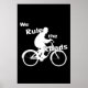 This wall art is for the cyclist or cycling enthusiast. A graphic of a bike rider is accompanied by the words, "We rule the roads." Buy as is or customize to change the poster color.