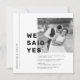 This black and white modern card is great to make a wedding announcements. It feachures 'We said Yes' lettering, names of the newlyweds, elopement announcement and invitation to post-elopement party. Template is totally editable, just add your couple's photo and replace the text.