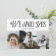 Vintage elegance wedding announcement 2-sided card featuring a elegant font mixed with script and serif that says "we said yes" on top of your photos. There are four pictures in total on this card (front and back). The message and picture on the back of the card is editable.