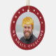 Go Trump yourself! Our photo ornament makes a hilarious holiday gift for Trump supporters and haters alike. Simply replace the sample photo with your own, and select "click to customize further" to reposition both your photo and the yellow Trump combover for a perfect fit. A red circular border bears the words "we shall overcomb" adorned with patriotic stars. Double-sided design repeats on reverse.