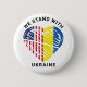 Ukraine and USA American flag heart in ukrainian flag colors blue and yellow / gold and USA flag colors red white and blue to show support for Ukranian solidarity, peace and freedom. COPYRIGHT © 2021 Judy Burrows, Black Dog Art - All Rights Reserved. We Stand With Ukraine USA American Flag Heart button