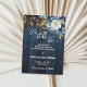An elegant Wedding Anniversary Save the Date Card with elegant calligraphy completed by wonderful blue wood, garden string lights and white blue floral with gold glitter. You can personalize this card with your pre-Wedding Anniversary details.