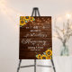 An elegant wedding anniversary design with string lights, sunflowers and elegant calligraphy that you can customize with your details.