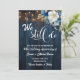 An elegant Wedding Anniversary Save the Date Card with elegant calligraphy completed by wonderful blue wood, garden string lights and white blue floral with gold glitter. You can personalize this card with your pre-Wedding Anniversary details.
