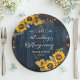 An elegant wedding anniversary design with string lights, sunflowers and elegant calligraphy that you can customize with your details.