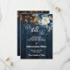 An elegant Wedding Anniversary Save the Date Card with elegant calligraphy completed by wonderful blue wood, garden string lights and white blue floral with gold glitter. You can personalize this card with your pre-Wedding Anniversary details.
