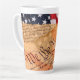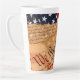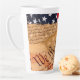 Begin or finish your Patriotic day with this durable latte mug featuring the Constitution of We the People along with the US flag in the background. Image color may vary on different viewing screens.