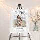 "We Tied The Knot" simple modern Reception welcome sign with added photo where you can share a photo of your wedding day