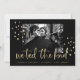 This elegant wedding announcement or elopement announcement card features modern, faux gold script typography and accents with your favorite personal photo, on a dramatic black background. A stylish way to let everyone know you got married!