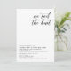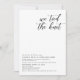 Plain white envelopes are included with paper invitations and will come to fit the invitation size you select. If you don’t need the envelopes, you may choose to not receive them by selecting the dropdown below "Envelopes" and choosing "None." If you’d like to have a design on your envelopes, you can browse all of these available envelopes to find the design that complements your We Tied The Knot Wedding Reception Invitation.