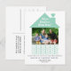 Announce your change of address with this modern “We’ve Moved” announcement card, featuring a photo displayed in the shape of a house. The soft teal/aqua house colour creates a calm, welcoming feel and is fully editable to suit your personal or business branding.