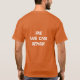 My 11 yo wore adult XL (5’7” 165#). The 8yo is small framed. She wore adult small and tied it in the back. Grandma wore adult large with long sleeve shirt underneath. Tall girl adult medium. Dark haired male adult large. Good quality dark Heather gray, Gildan brand shirt. -it was next up from basic choice and cost about $20 per shirt. Not too thick or thin. Washed and dried well, no major shrinkage. Not see-through. Can wear a bra under it fine. Screen print is just as shown and well done, front and back.