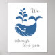 This darling nursery poster art features a blue colored whale surrounded by the phrase "We WHALE always love you" in a steel grey script font. It's perfect for a child's bedroom or playroom.
