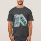 My 11 yo wore adult XL (5’7” 165#). The 8yo is small framed. She wore adult small and tied it in the back. Grandma wore adult large with long sleeve shirt underneath. Tall girl adult medium. Dark haired male adult large. Good quality dark Heather gray, Gildan brand shirt. -it was next up from basic choice and cost about $20 per shirt. Not too thick or thin. Washed and dried well, no major shrinkage. Not see-through. Can wear a bra under it fine. Screen print is just as shown and well done, front and back.
