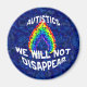 Autistics: We will not disappear. Do not let autism--and autistic people--become "a word for the history books." The Spectrum exists for a reason. An autistic activist design from autistart.com.