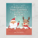 Santa and the reindeer giving a wave while standing on top of the chimney. Cute Christmas card that simply says "We wish you a Merry Christmas and a Happy New Year".