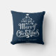 We wish you a Merry Christmas personalized Throw Pillow. A festive Christmas graphic Pillow featuring a classic message in a fun Christmas tree shape on a red background.