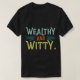 Wealthy and Witty" in a sleek, minimalist font. This design subtly conveys success and a sharp mind.