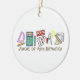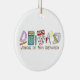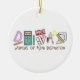 Lightweight, smooth, pure white ornament with nice sheen. Perfect size to be seen from across the room ... and to attract closer inspection! Price was great for ordering enough for the whole family! Clear, bold black design just as requested. Matches the order exactly. Just so nice!