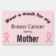 A yard sign that says "Wear a mask for my breast cancer fighting Mother" in black letters on a pink background with pink ribbons. The sign is to give people a specific reason to wear a face mask. If you have a family member or loved one who's fighting breast cancer during this pandemic, let other people know. It's different when the call for face masks comes from a neighbor and not someone more distant. Let the people around you know that wearing a face mask helps the people around them and the people their community members love.