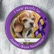 In the upper right of the border, a purple awareness ribbon adds a recognizable symbol of support and solidarity. At the center of the pin is a customizable photo area, giving you space to feature a captioned picture of your furry friend. Whether you add their name, a special date, or a short tribute, this personalized detail transforms the button into a powerful statement of love and protection. Perfect for awareness events, shelter fundraisers, or everyday advocacy, this pin helps you carry your message—and your pet—close to your heart.