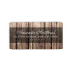 Return address label featuring old, weathered barn wood planks. Brown tone. Across is a darker area with templates fields for your name and address