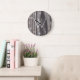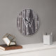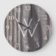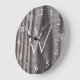 Woodsy and rustic country grey weatherd wood with crisp white numers and a center monogram letter. Also available in square.