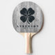 Weathered Dark Gray Wood Four Leaf Clover withName Ping Pong Paddle