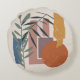 This simple and elegant boho influenced design is weathered and distressed shapes with two plan t stalks in earthy shades of orange, brown, green, and blue.