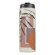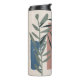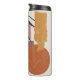 This simple and elegant boho influenced design is weathered and distressed shapes with two plan t stalks in earthy shades of orange, brown, green, and blue.
